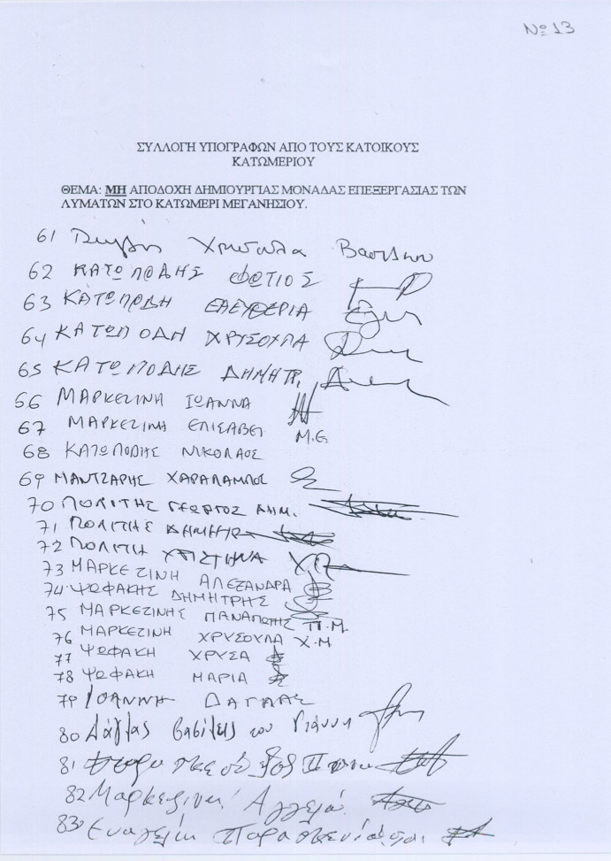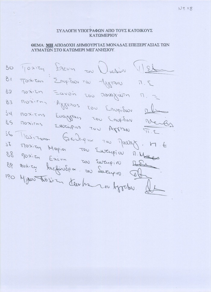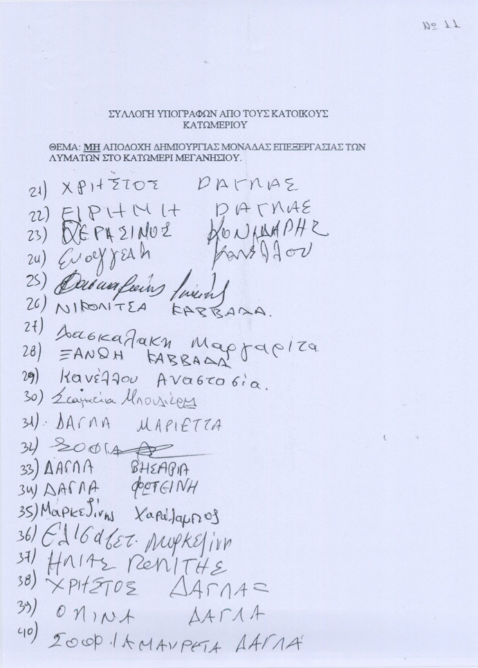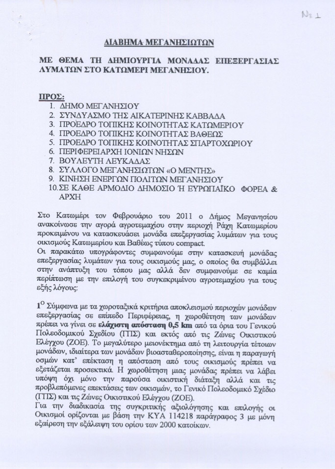 Διάβημα Μεγανησιωτών – Μονάδα επεξεργασίας λυμάτων στο Κατωμέρι