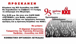 Κλιμάκιο της ΚΟ Λευκάδας του ΚΚΕ θα περιοδεύσει το Σάββατο 11 Γενάρη το απόγευμα στο Μεγανήσι.