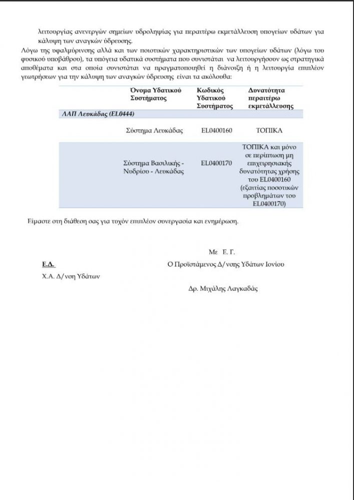 The Municipality of Meganisi makes a strong appeal for responsibility and cooperation, so that together we can respond with seriousness and consistency to this challenging situation. Water conservation is a collective responsibility and a crucial step toward protecting the environment and ensuring the smooth functioning of our community.