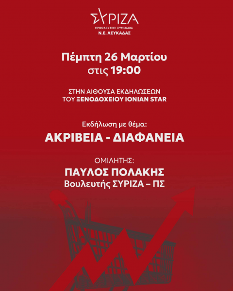 Η Νομαρχιακή Επιτροπή ΣΥΡΙΖΑ – Π. Σ. Λευκάδας σας προσκαλεί σε ανοιχτή πολιτική εκδήλωση – συζήτηση με θέμα: