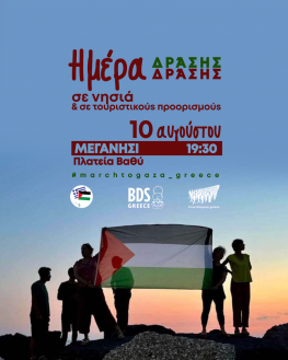 5 Οκτ 2025 Δραστηριότητες/Εκδηλώσεις, Ελλάδα/Κόσμος 1 Το Μεγανήσι διαδηλώνει έμπρακτα την στήριξή του στην Ιωάννα Βρεττού και τους υπόλοιπους παράνομα κρατούμενους στο Ισραήλ